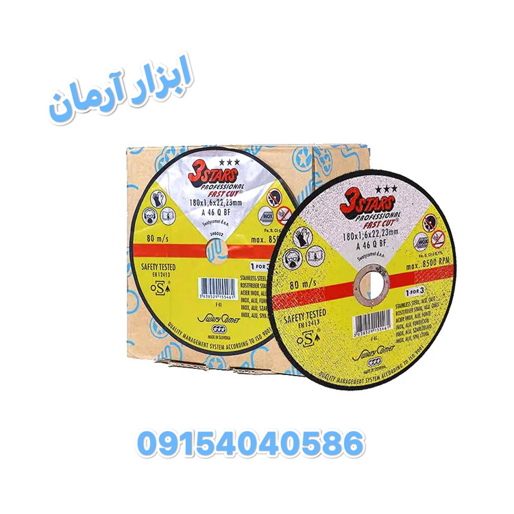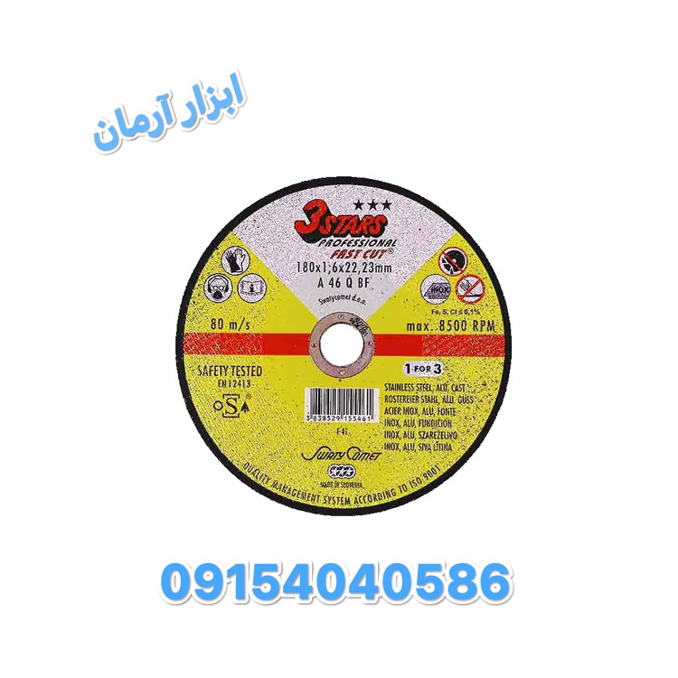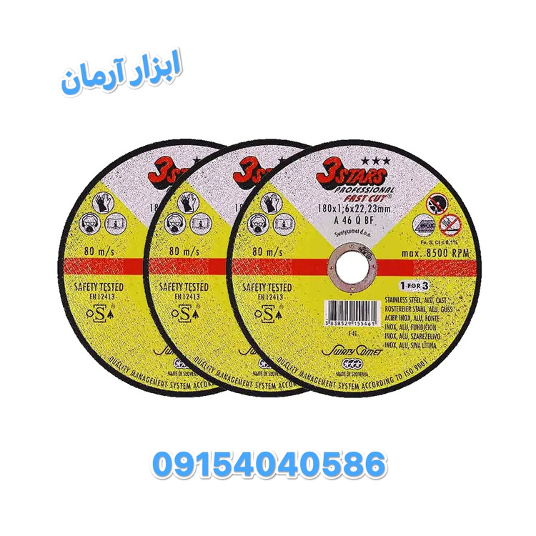 صفحه استیل بر 1.6×180 سه ستاره ریز 3stars برای برشکاری انواع ورقهای استیل، انواع فلز و فولادهای زنگ نزن کاربرد دارد. قابل نصب روی دستگاه های برش و فرز است.