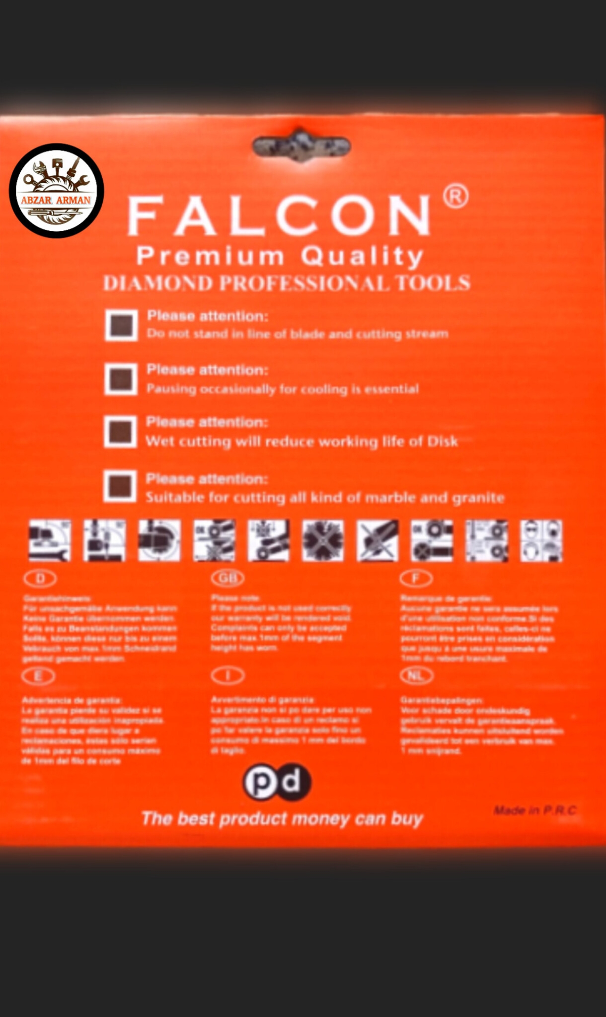 صفحه برش مینی سرامیک فالکون (FALCON) با قطر 230 میلی متر و ضخامت 2 میلی متری مخصوص برش انواع سرامیک های موجود در بازار ایران است.
