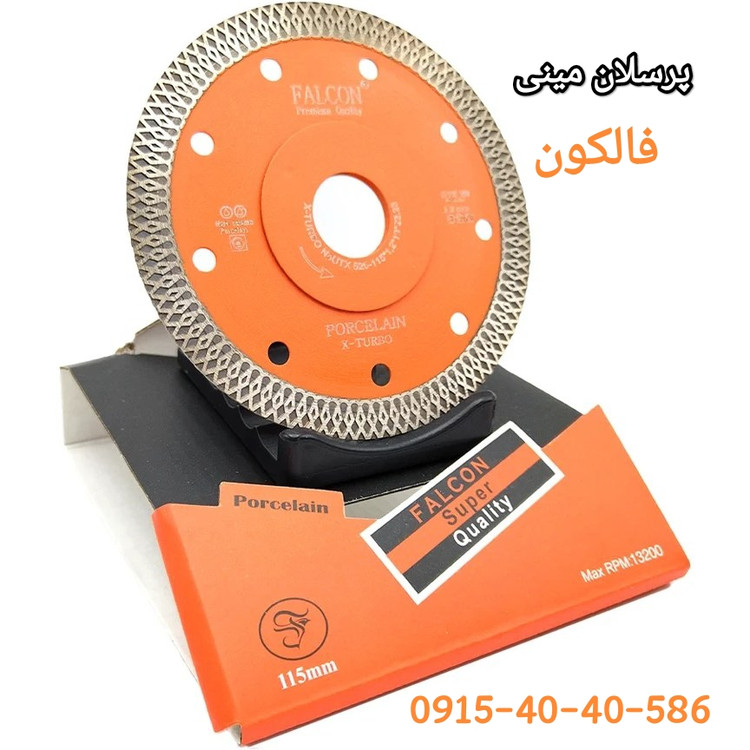 صفحه مینی پرسلان بر توربو فالکون (FALCON) با قطر ۱۱5 میلی متر و ضخامت 1.2 میلی متری دارای لبه های الماسه توربو با ضخامت بسیار کم است . همچنین با برشی فوقالعاده تمیز و گرد و غباری حداقلی، انواع سرامیکهای نرم و پرسلان را به راحتی و دقتی بینظیر برش میدهد . این محصول با سرعت برش بسیار بالایی در پرسلانهای سخت، دقت و کیفیت عملکرد را به حداکثر میرساند و تجربهای بینظیر از برشی تمیز را فراهم میکند .